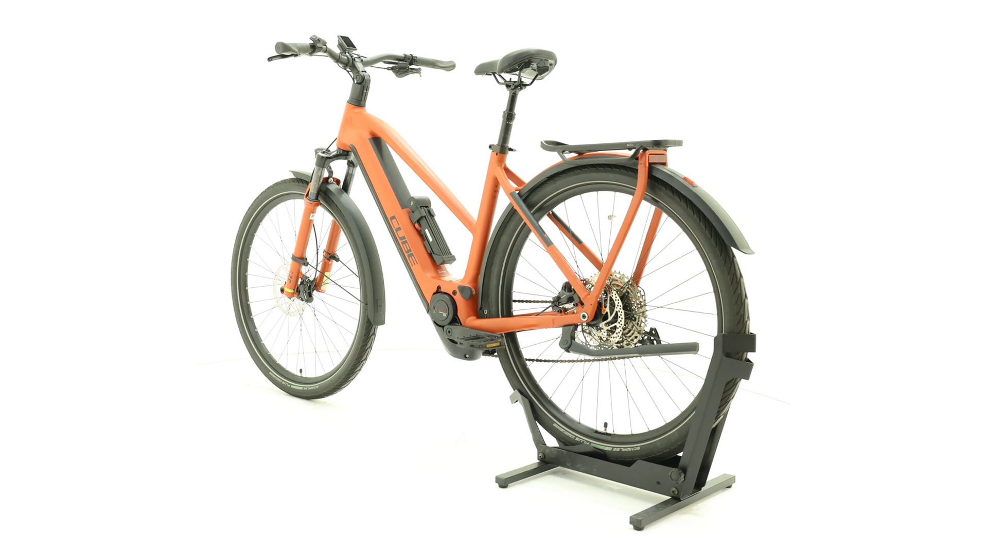The Cube Kathmandu Hybrid EXC750Individual is a versatile premium e-trekking bike: Equipped with the powerful Bosch Performance Line CX Generation 4 motor and a 750 Wh battery, it masters even longer tours with ease. The comfortable frame geometry („Efficient Comfort Geometry“) paired with an integrated carrier (Integrated Carrier 3.0) including mudguard make the bike ideal for everyday use, leisure and touring. With hydraulic disc brakes from Shimano, 12-speed Deore drivetrain and front suspension (SR Suntour), you can enjoy a precise and safe ride - whether in the city or in the countryside.