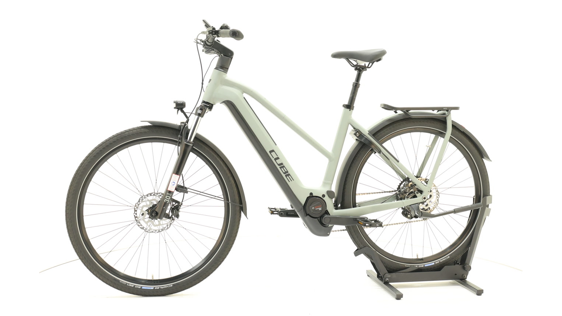 Cube Kathmandu Hybrid ONE 750: This modern e-trekking runabout combines powerful performance with suitability for everyday use. The powerful Bosch Performance CX mid-motor (250 W, 85 Nm torque) and the integrated 750 Wh battery provide reliable support - ideal for long tours or commutes. The lightweight aluminium Superlite frame with comfortable geometry and a suspension SR Suntour fork (100 mm travel) offer secure, comfortable support on the road and dirt track. With 28″ wheels, hydraulic disc brakes and reliable 9-speed gears from Shimano, the bike is suitable for everyday use and touring at the same time. Mudguards, lights and pannier rack come as standard - perfect for commuters or leisure cyclists.