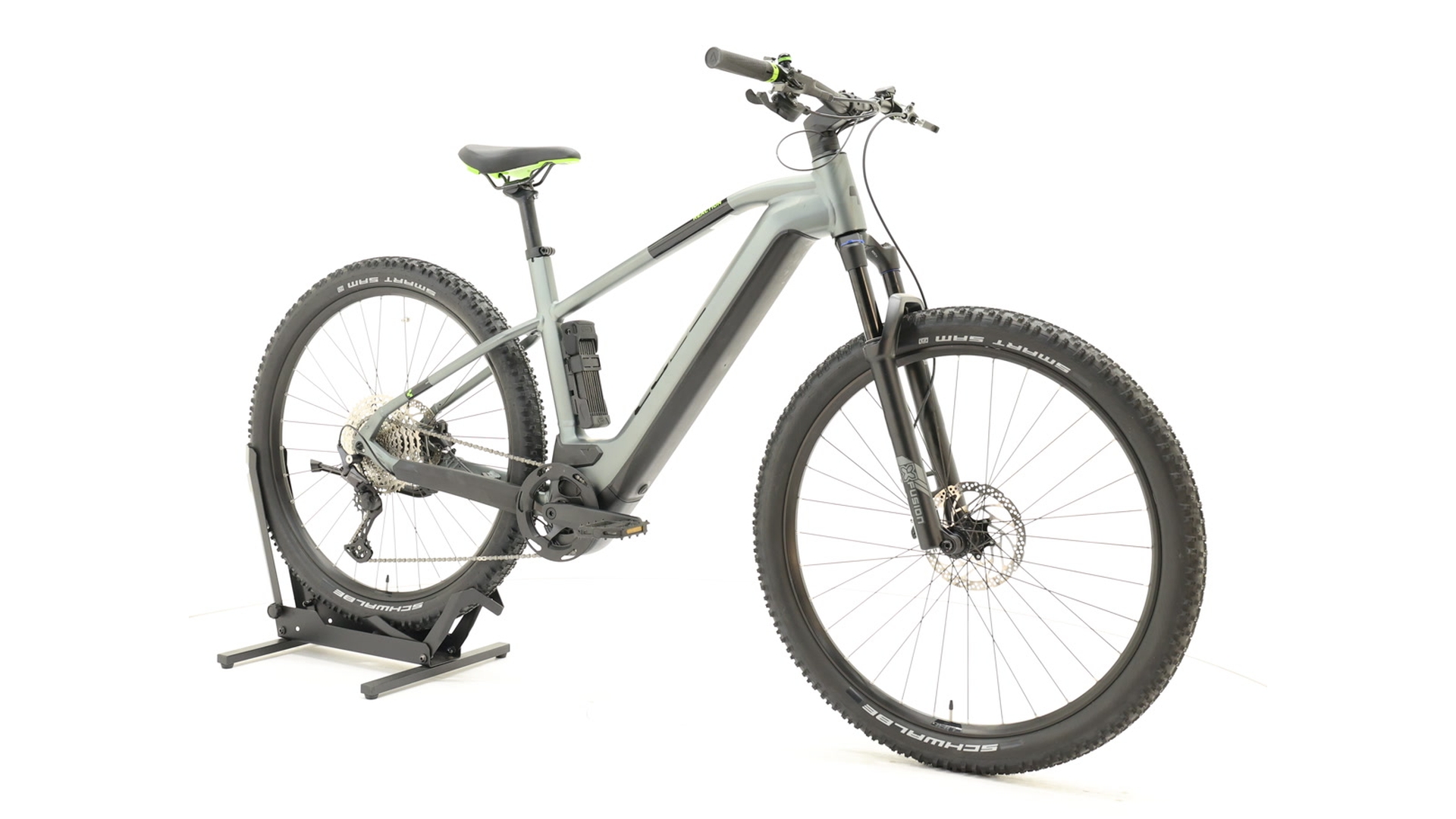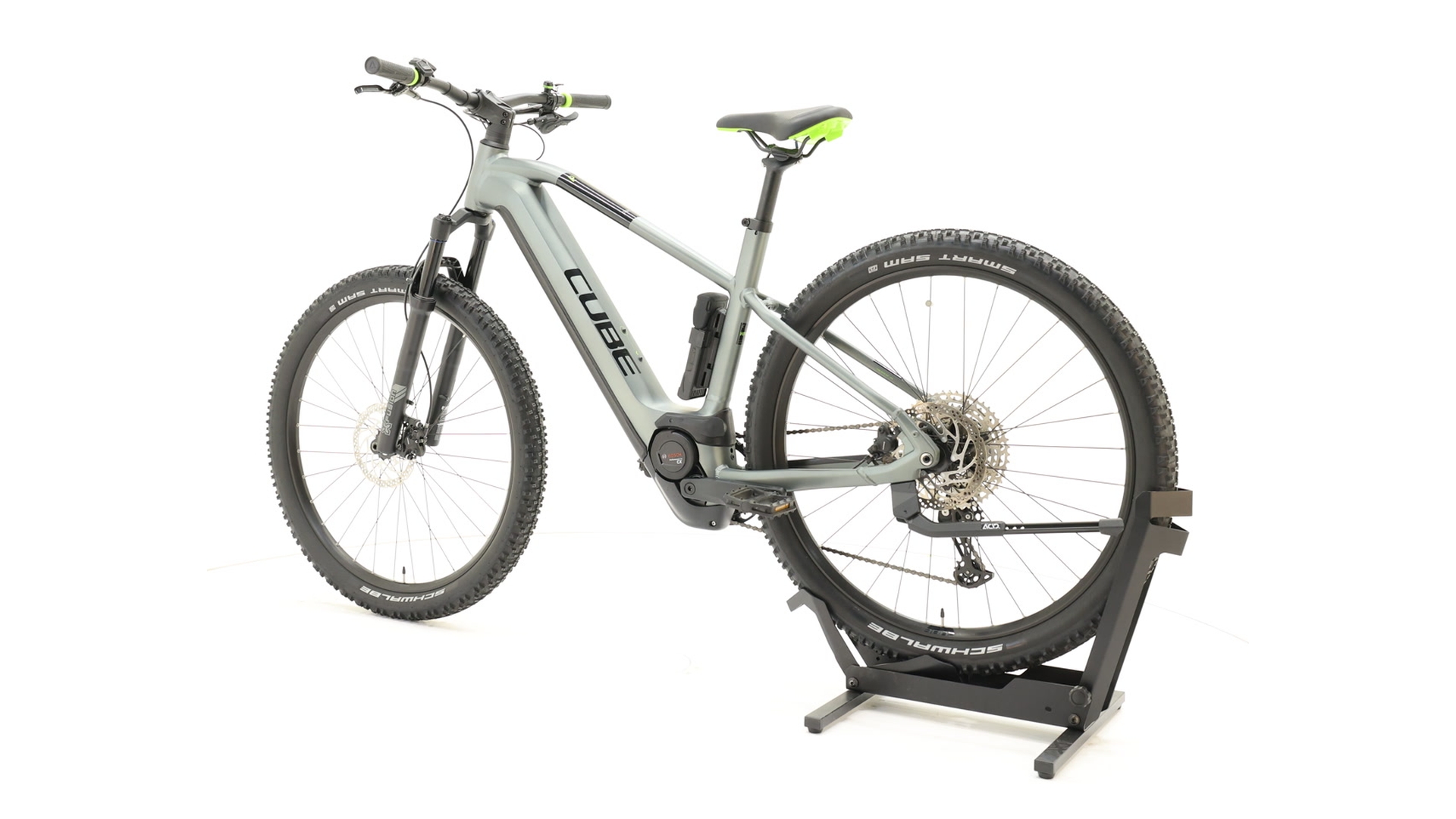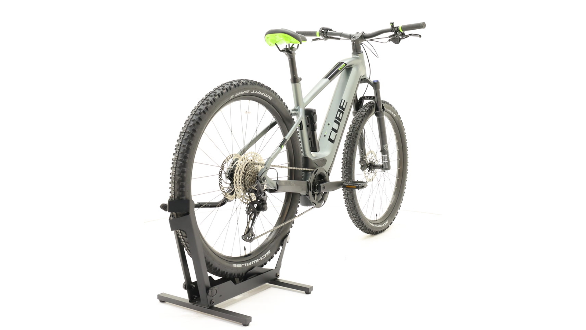 The Cube Reaction Hybrid Pro 625 is a sporty e-hardtail with an aluminium frame, Bosch PowerTube 625 Wh battery and powerful Bosch CX Performance motor (85 Nm).with the X-Fusion air suspension fork (lockout), Shimano Deore 1×11 gears, grippy Schwalbe Smart Sam 2.6″ tyres and hydraulic disc brakes, it offers ideal propulsion and control on trails and forest roads, weighs around 25 kg and is equally suitable for demanding tours, sporty trail rides and everyday use.