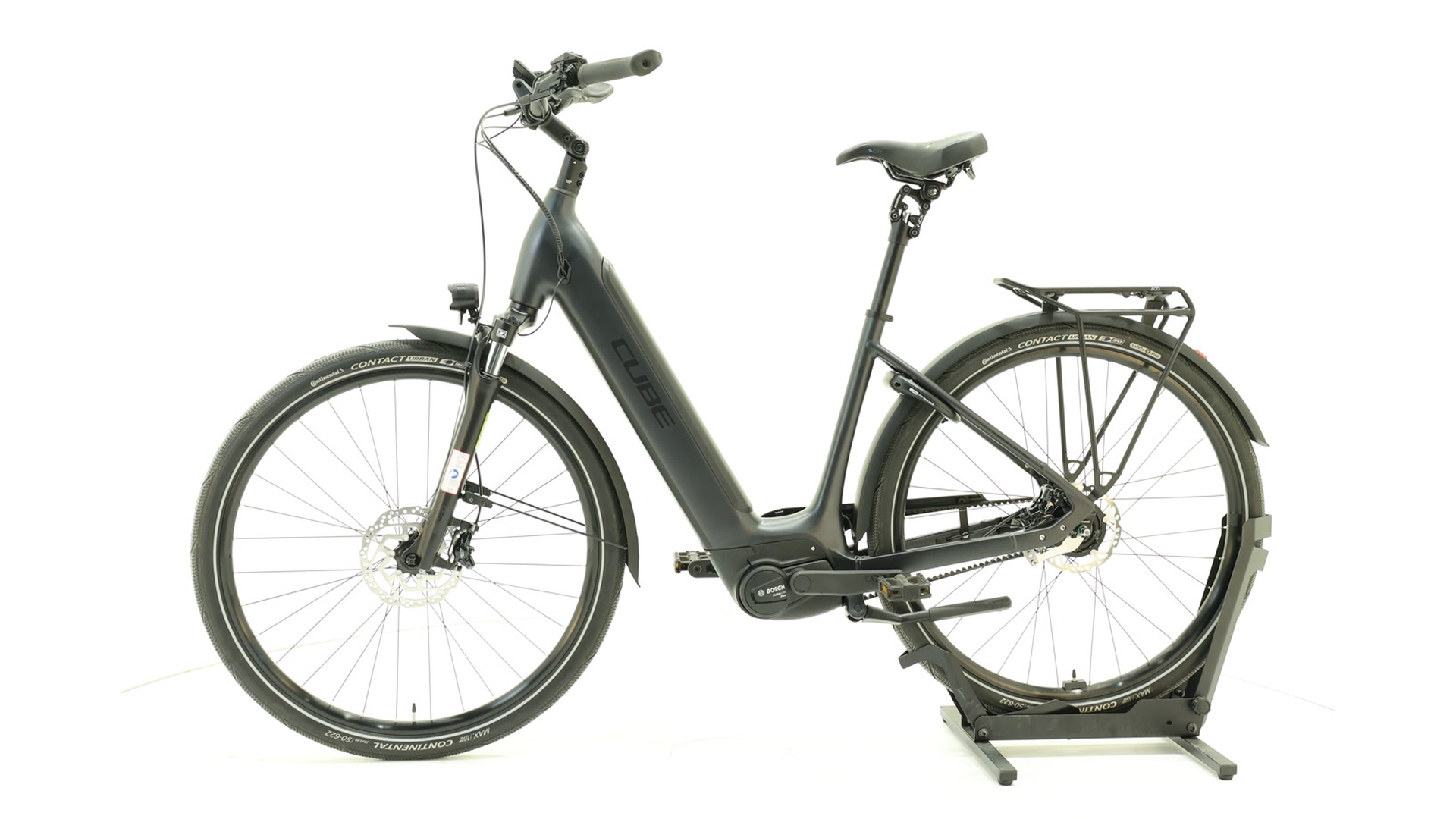 Experience urban mobility in a whole new way with the Cube Supreme RT Hybrid625 – an elegant low step-through e-bike with a reliable Bosch PowerTube 625Wh battery for long rides. The Bosch Performance motor (55Nm) provides powerful assistance with every pedal stroke. The aluminium Superlite frame impresses with its elegant design featuring smooth welds, easy handling and easy mounting and dismounting. Comfortable components such as suspension fork and seat post, hydraulic disc brakes plus coaster brake, solid Continental tyres, mudguards, lights, luggage rack and kickstand make it suitable for everyday use and touring. A modern, fully equipped city e-bike that stylishly combines everyday use and leisure.