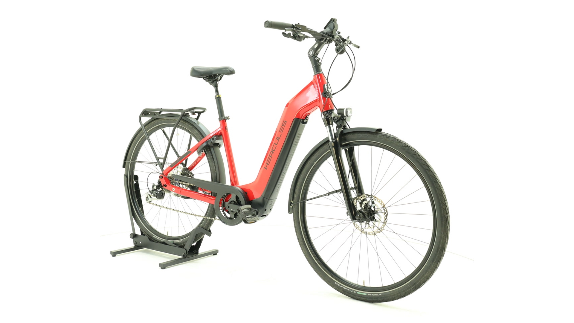 The Hercules Intero I-8 is a versatile e-city bike with an elegant design and great suitability for everyday use. Equipped with a powerful Panasonic motor and a 630 Wh battery, it offers harmonious support on everyday rides and tours. The Shimano Alivio 9-speed gear hub ensures low-maintenance riding comfort, while the hydraulic disc brakes guarantee precise safety. The comfortable suspension fork, adjustable stem and ergonomic saddle make it particularly pleasant to ride. With its high-quality equipment and low entry, the Hercules Intero I-8 is ideal for style-conscious commuters and leisure riders who value comfort and quality.